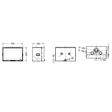 Insert à bois Thermorossi SkyLine 800 - foyer fonte Conforme à la norme EN13240 - Classe énergétique : A+ - Indice d'efficacité énergétique : - Puissance nominale : 5,7 / 7,9 / 10,7 kW - Rendement : 83,9 / 87,4 / 85,5 % Dimensions (HXLXP) : 540x785x450 mm - Poids : 152 kg CO : 348 / 228 / 120 mg/Nm3 - OGC : 80 / 67 / 22 mg/Nm3 - NOx : 77 / 69 / 68 mg/Nm3 - Particules : 18 / 17 / 14 mg/Nm3 ETAS : 74 / 77 / 76 %