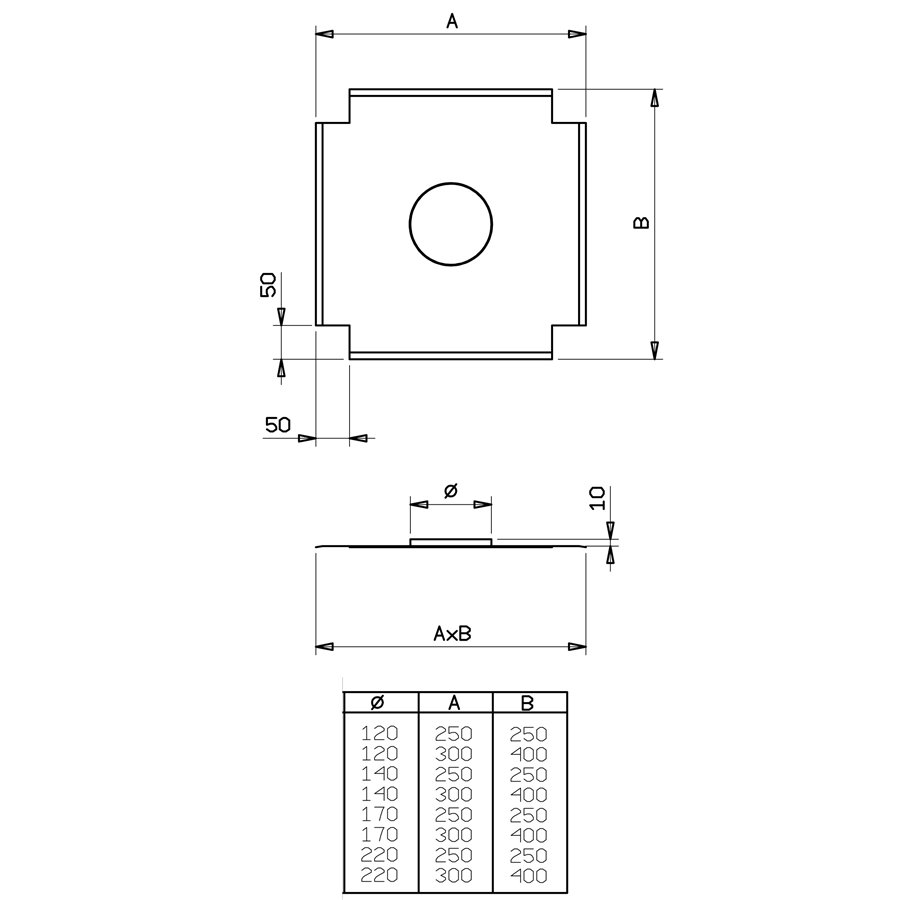 Plaque de finition haute pour tubage Ø 180-200 mm - 250 x 250