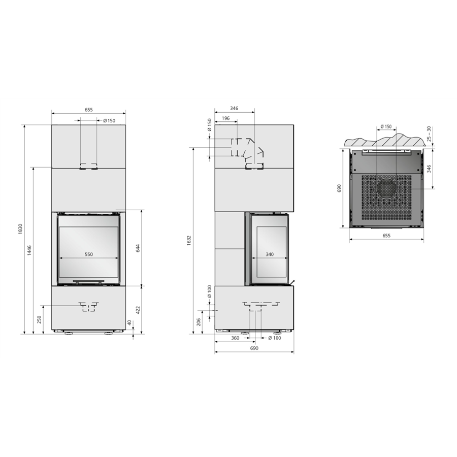 Poêle-cheminée à bois CLUB UH 550 Sintered Stone Corten